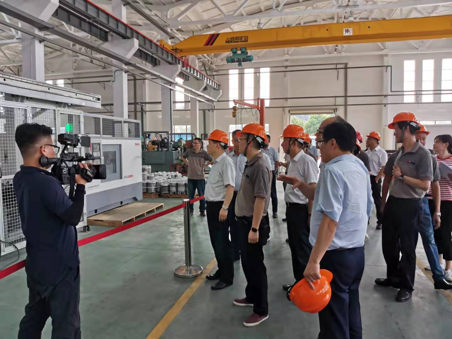In the afternoon of July 24, Li Qiufeng, Secretary of Huishan District Committee, and other leaders came to Wuxi Ou Ruijing Electromechanical Co. The company's chairman Chen Zhixing, general manager Ma Ning and related personnel accompanied the investigation.